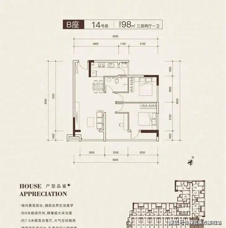 在售产品:建面约35-98㎡1~3房