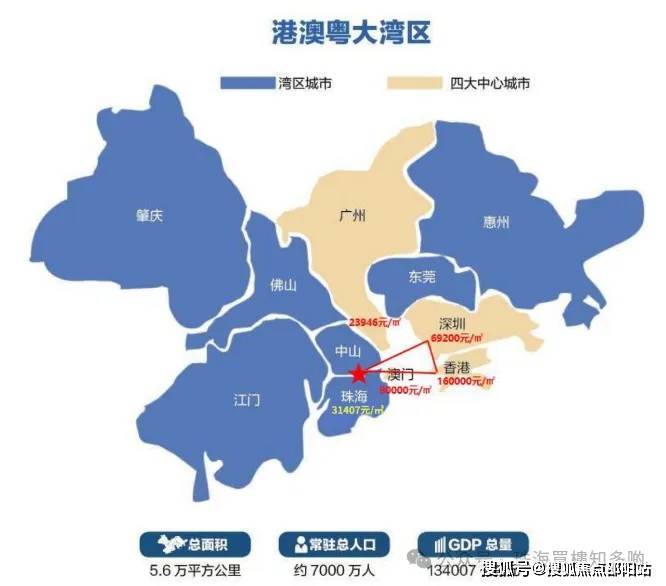 地处粤港澳大湾区几何中心,珠海、广州、深圳、香港、澳门环绕。10分钟到珠海主城中心,周边3-5万+/㎡,房价差1/4。