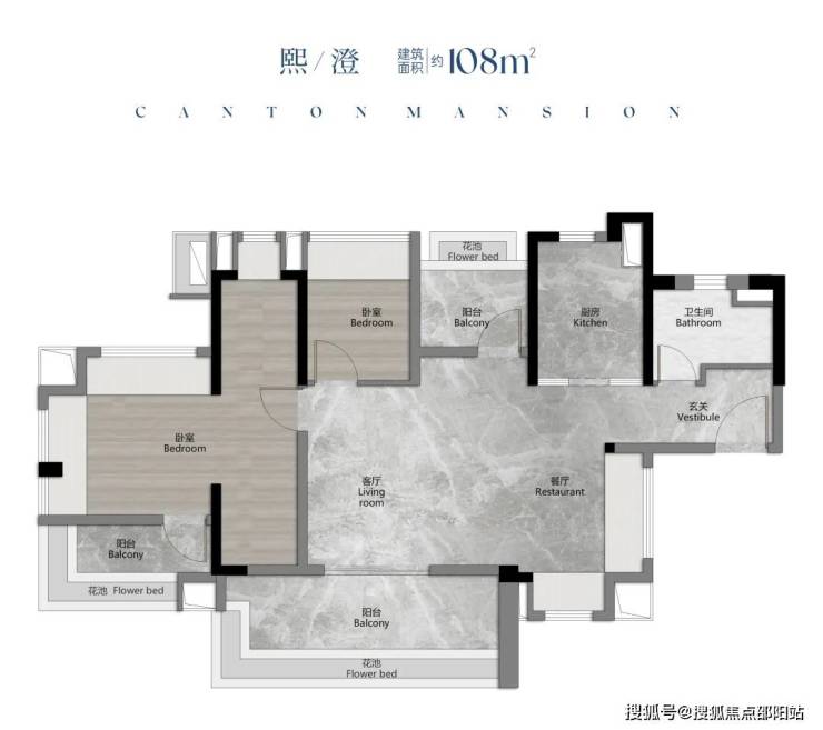 108㎡四房:更大的阳台和开放式设计,灵活的房间布局,提供更多的定制化空间。