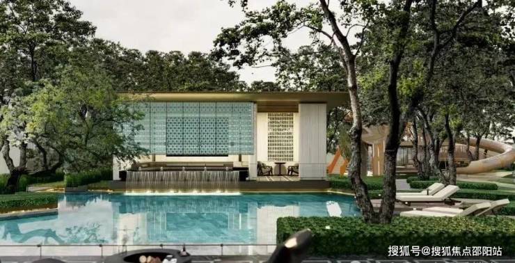 园林景观和儿童玩乐区,也富有广府文化的底蕴,四水归堂,露天泳池,还专门设置了玲珑水榭和别院会客,既考虑到了景观,又兼顾了休憩、社交、互动等功能实用性。