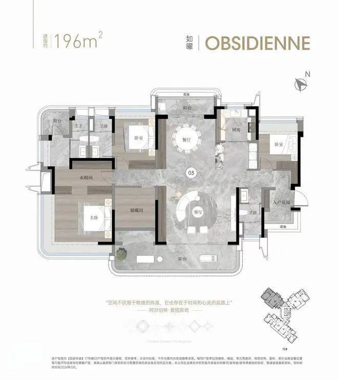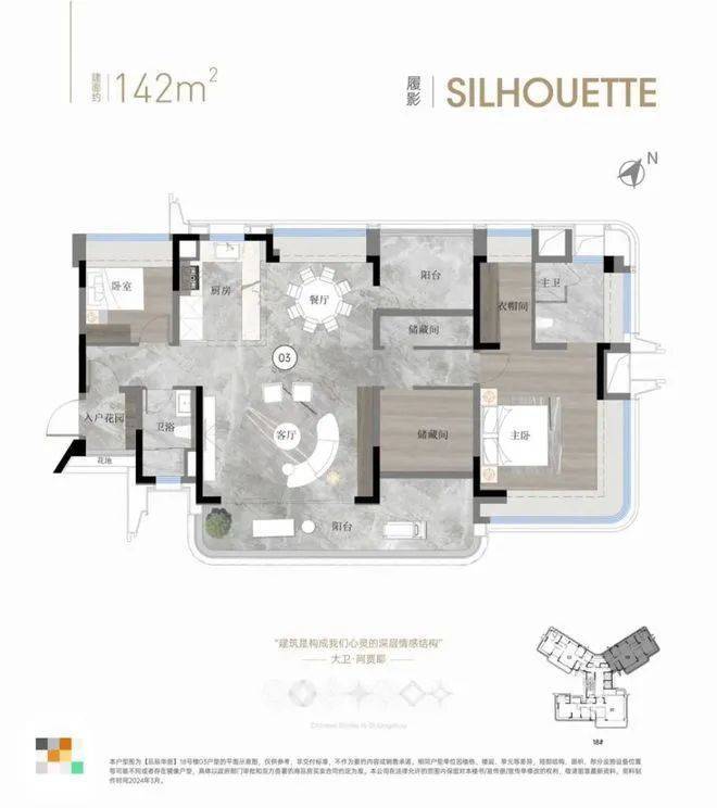 230平户型拥有私家电梯厅、双主套、独立佣人房、南北对流、LDKB大方厅、主卧L型270°飘窗等,大大提升了整体的空间体验。
