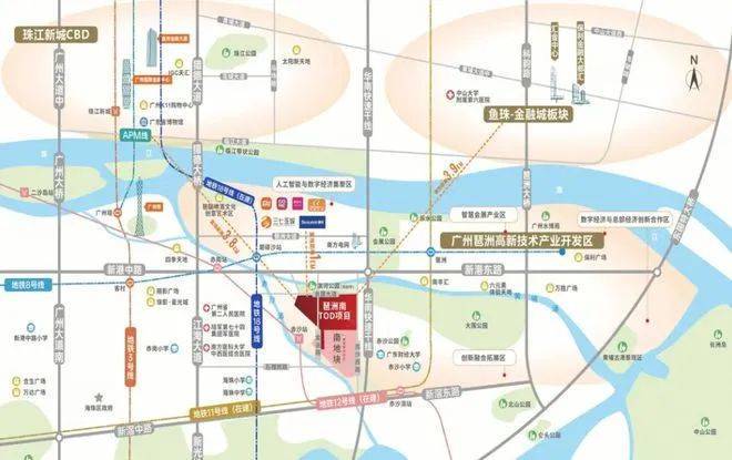 琶洲南TOD位于海珠区琶洲人工智能与数字经济示范区内,北至黄埔涌,东至华南快速路,南侧、西侧临赤沙涌,一江之隔是繁华的琶洲总部基地,地段价值那是数一数二。
