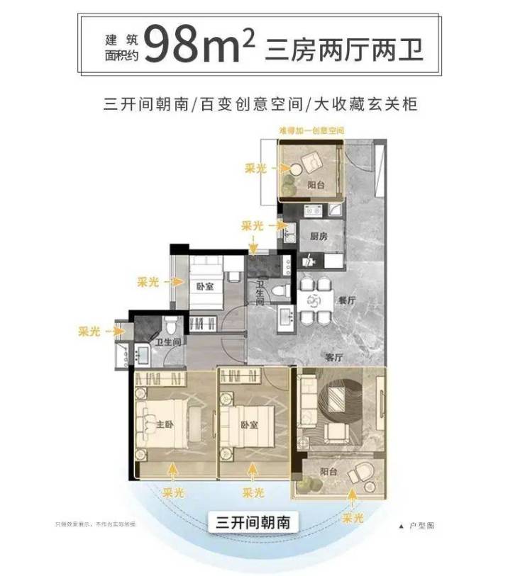 【高层户型鉴赏-超95%南向户型设计,高拓展高赠送】