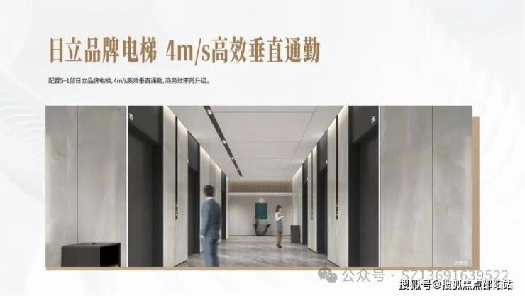 ①、品牌日立电梯配置5+1台日立品牌电梯,4m/s高效垂直通勤!满足大规模人流同行,助力企业高效办公