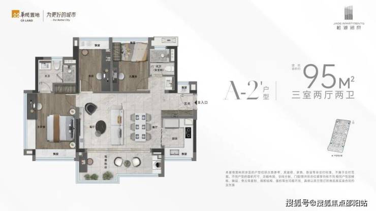 ✅【约5.7米横厅开间 大面宽户型 】A-2户型 95㎡ 三房两厅两卫