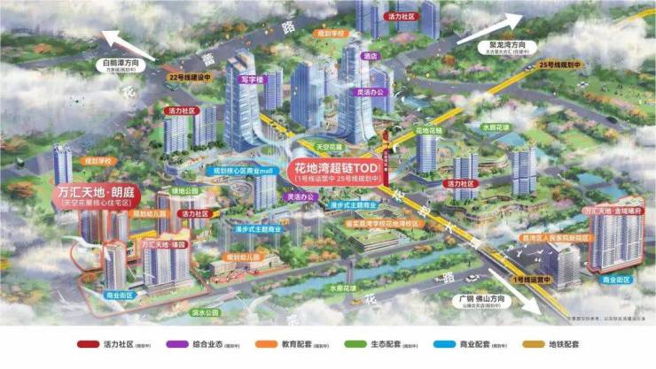 15条城市、城际轨道(规划中)汇聚,3地铁6线交汇(规划中)无缝链接大湾区,花地湾TOD超链中心(规划中)1号线、25号线(规划中)接驳,串联商业、办公,立体生活触手可及。