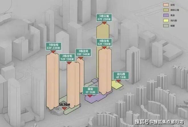 项目整体规划为“1+4”布局,由南北两区联动构成。北区:规划两栋约200-240米超高层住宅南区:规划两栋约150–200米住宅 + 一栋250米公寓配备幼儿园、立体园林、会所、泳池与多功能活动场,打造功能丰富的顶豪生活场域