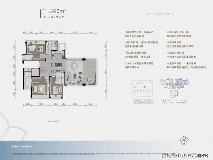 约240㎡270度环幕山海景观、9米挑高空中墅院