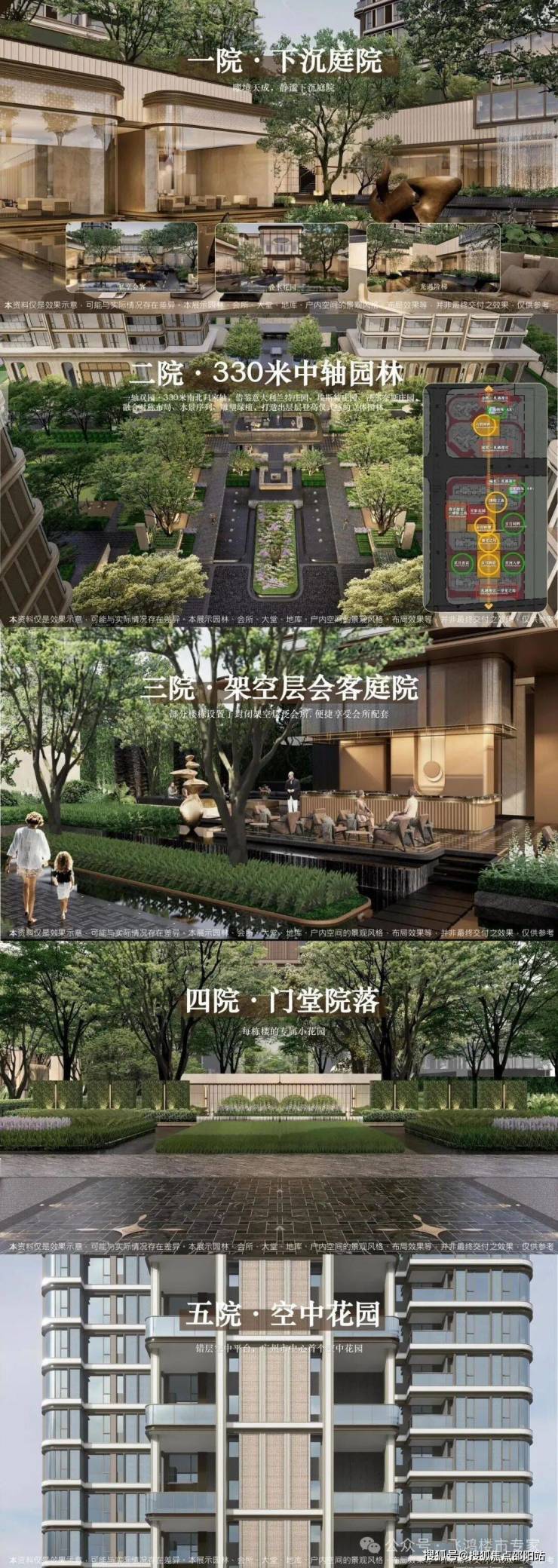 保利天曜在社区规划上同样匠心独运。项目基于约2.9万㎡的中轴园林展开,这一借鉴了意大利台地花园的立体园林将南北地块融为一体。