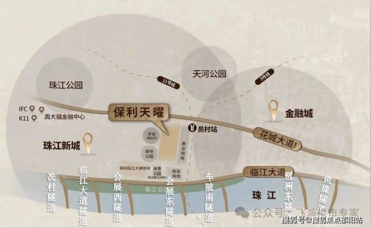 保利天曜坐落于广州珠江新城东、珠江以北的城市核心-1,地处“珠江新城-金融城-琶洲”黄金三角区的几何中心,这一位置堪称广州现代城市建设的“心脏地带”。