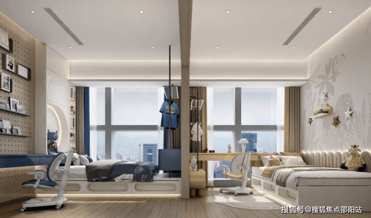 主卧房间可以满足主人起居、收纳、梳妆等多种需求,保证了房间功能的齐全性。另外,主卧均为南朝向,配置有全景落地玻璃窗。如果未来入住在高楼层区域,还可以俯瞰香港北区景观。