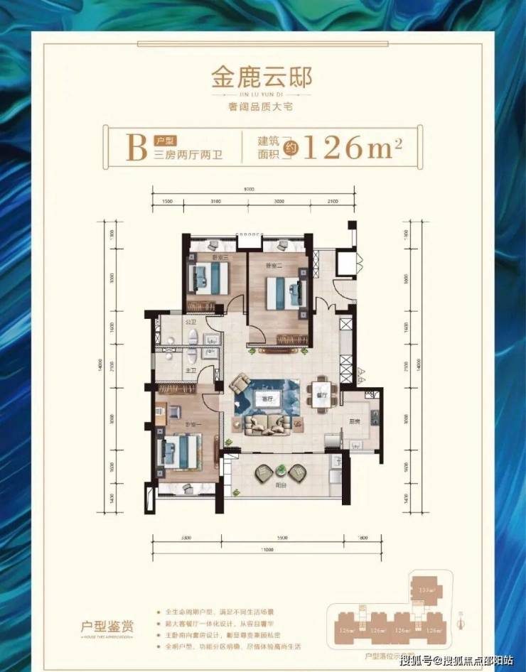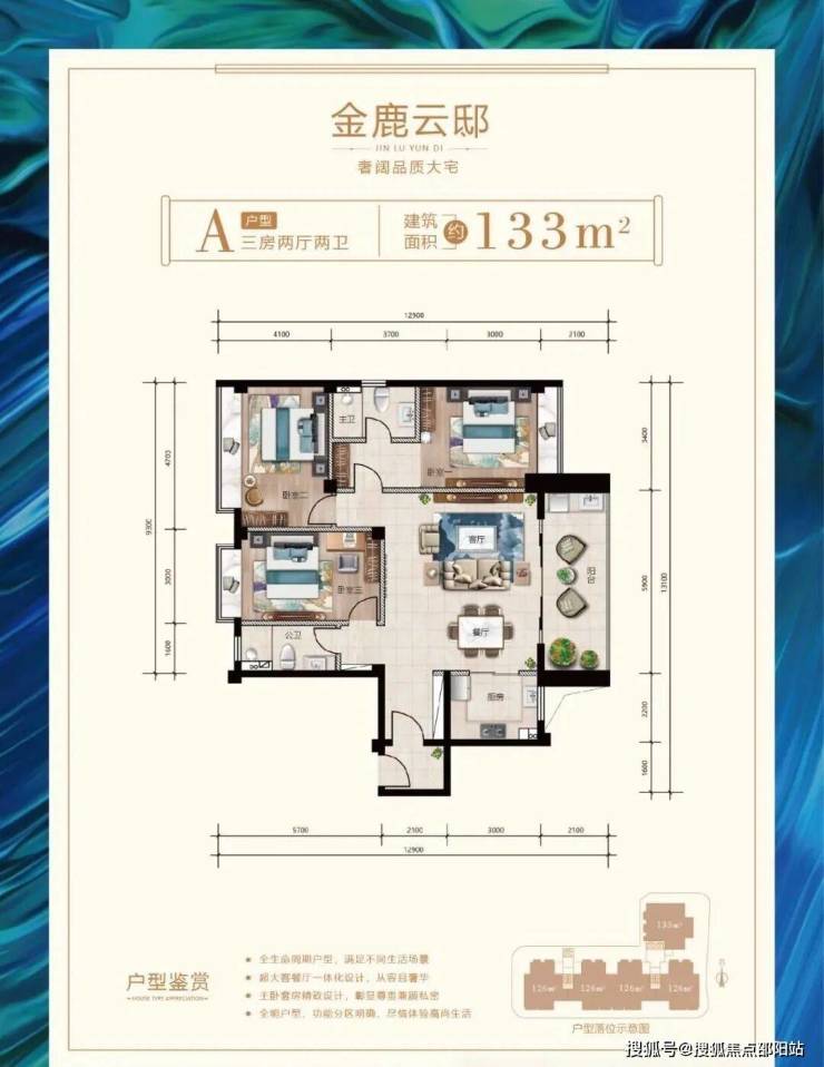 户型鉴赏建筑面积约126㎡-133㎡奢阔品质大宅;全生命周期户型,满足不同生活场景;超大客餐厅一体化设计,从容且奢华; 主卧套房精致设计,彰显尊贵兼顾私密;全明户型、功能分区明确、尽情体验高尚生活;
