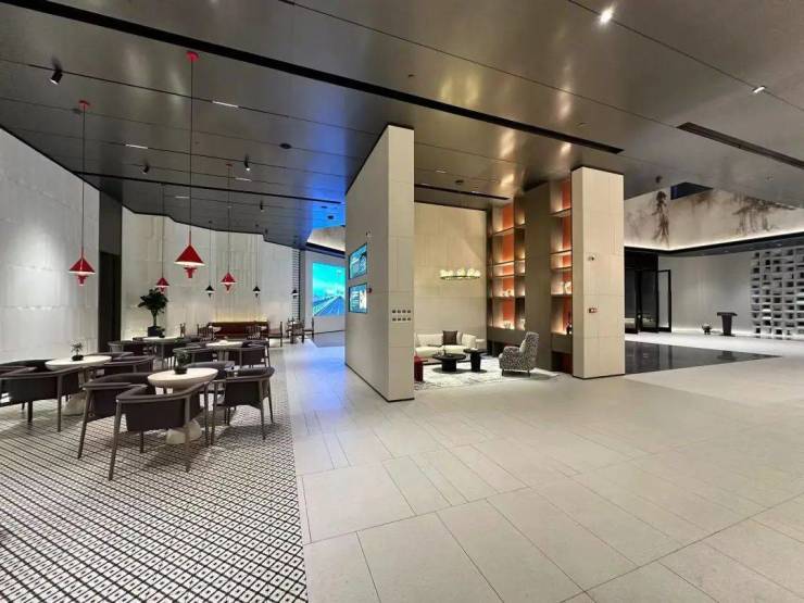 其售楼部,是按照国际星级酒店的审美风格和标准,进行高规格打造而成,走进去,仿佛误入了一座当代艺术馆。