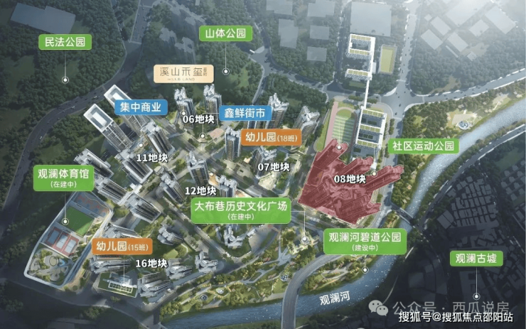 金光华溪山禾玺位于龙华区观澜街道布新路与规划中的布朗路交汇处西北侧,原为龙华观澜大布巷片区城市更新单元,大大小小地块共20个,主要为二类居住用地、商业用地、教育设施用地、公园绿地等,共分为4期开发建设。