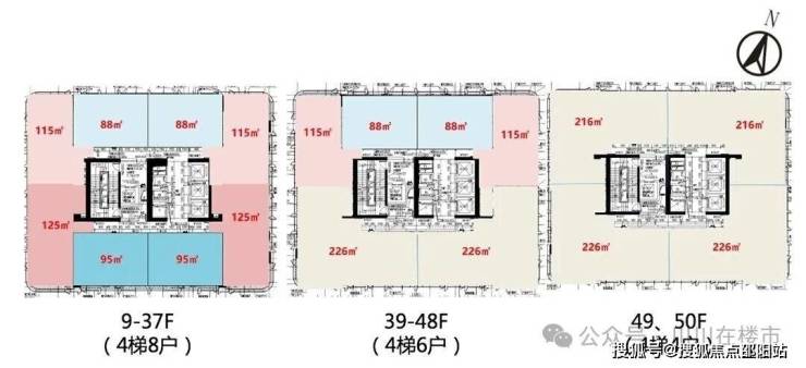 ◎户型建筑面积:约88、95平一房一厅115、125平两房两厅、216、226四房两厅