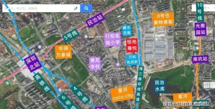 恒地尊悦,位于深圳市龙华区民治街道核心区域青龙东街与民塘路交叉口东北120米,紧邻深圳北站国际商务区与梅林关片区交汇处。项目背靠民治水库、南望银湖山脉,享有"三湖相绕"的生态资源,自然环境优越。