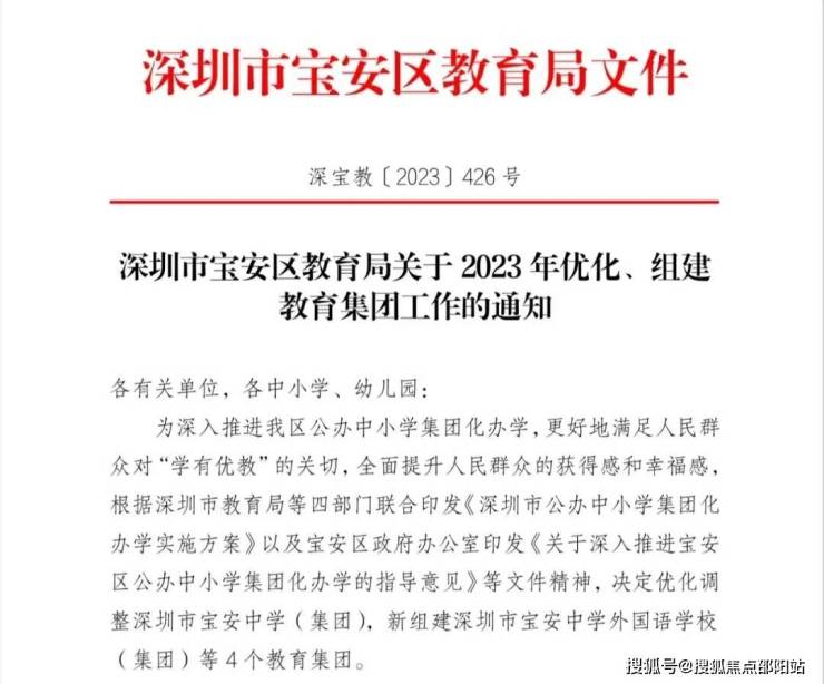 项目旁边,所规划的2个教育用地,已经正式出了红头文件,为深圳外国语宝安学校(集团)南校区,分别为1所63班九年一贯制学校,1所为27班九年一贯制学校(珈誉玖玺旁边),另外根据宝安区2024年最新的学区划分: