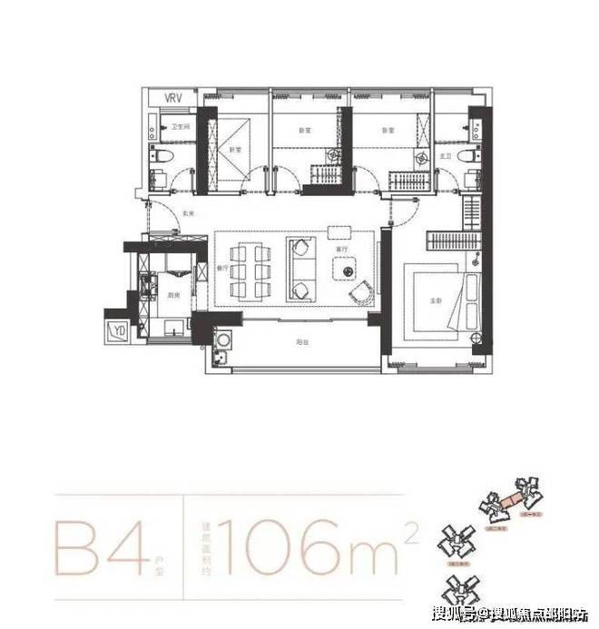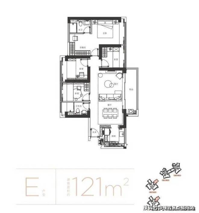 家政阳台定位,满足多人就餐,主卧独立卫生间