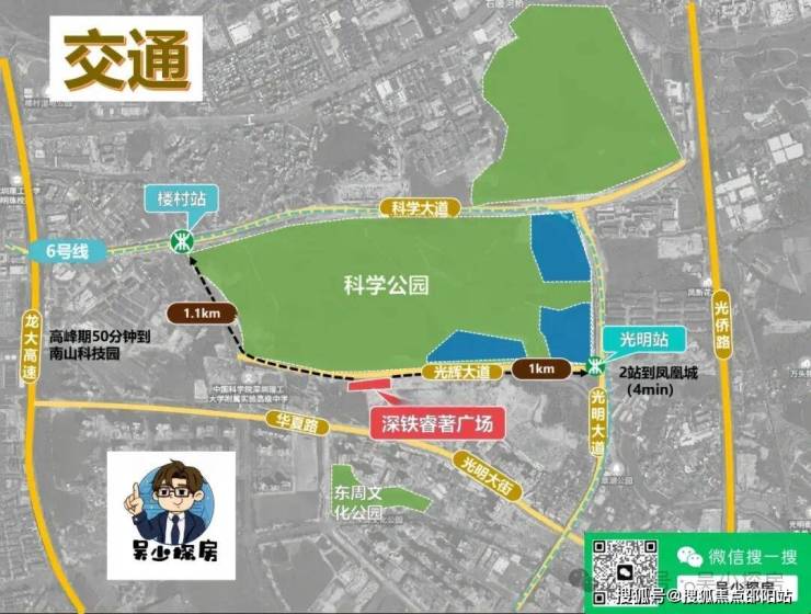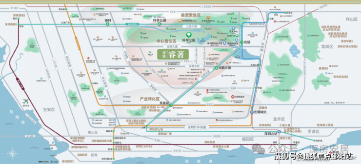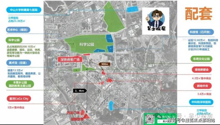 深铁睿著广场:项目北侧的光明科学公园,总占地208万公顷,预计2024年完工总体工程的60%,并且同步开园一部分。