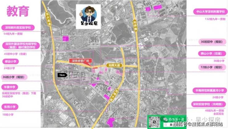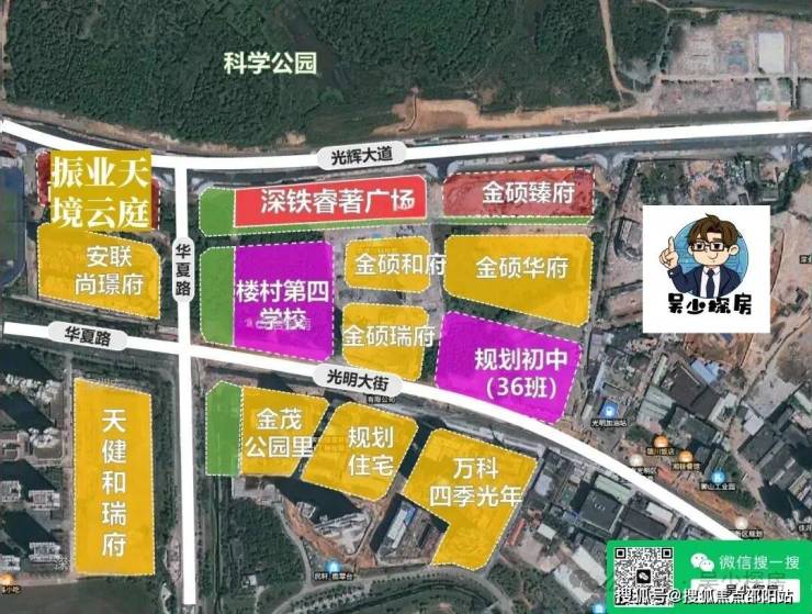 ②中小学:光明是一个社区对应多所学校,周边有10+个学校环绕。4月底刚揭牌的学校—深圳外国语学校光明学校(集团)楼村第四学校(暂定名),45班的九年一贯制学校,就在项目南侧。