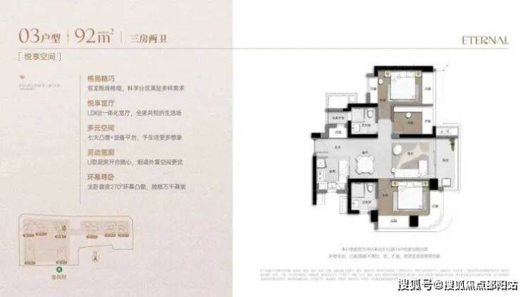 建面约92-173㎡三至四房缦系新规产品, 六大设计亮点,定义人居新境。