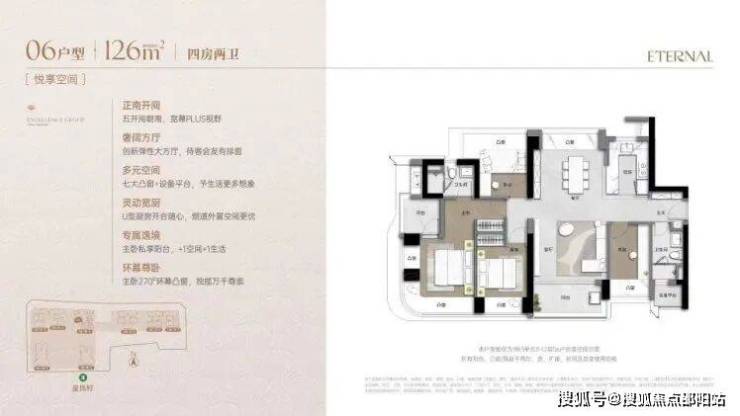 126㎡的4房2厅2卫,折后总价1256-1426万/套,单价9.98-11.3万/㎡。