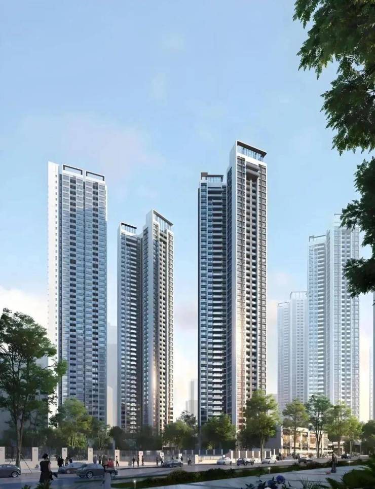 B-02 地块占地面积约 3.6 万平方米,总建筑面积约 26.8 万平方米,计容建筑面积 19 万平方米,容积率为 5.32,绿化率为 40%。该地块规划有 3 栋 7 个单元的住宅、1 栋商务公寓、1 栋办公楼和 1 所幼儿园。具体来看,1 栋 1 单元为 43 层的商品房,1 栋 2 单元为 47 层的商品房,2 栋 1 单元为 46 层的商品房,2 栋 2 单元为 29 层的商务公寓,2 栋 3 单元为 22 层的办公楼,2 栋 4、5 单元和 3 栋 1、2 单元均为 48 层和 31 层的商品房。该地块规划停车位 1389 个。
