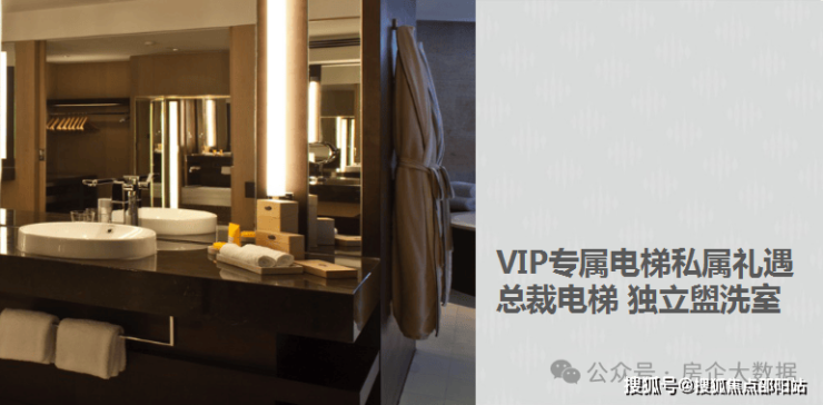 【配置】- 16米超高大堂、4.5米阔境层高、2.6米超大幅宽玻璃幕墙、13部最快7米/秒奥的斯电梯、VIP专属直达电梯、VIP总裁盥洗室