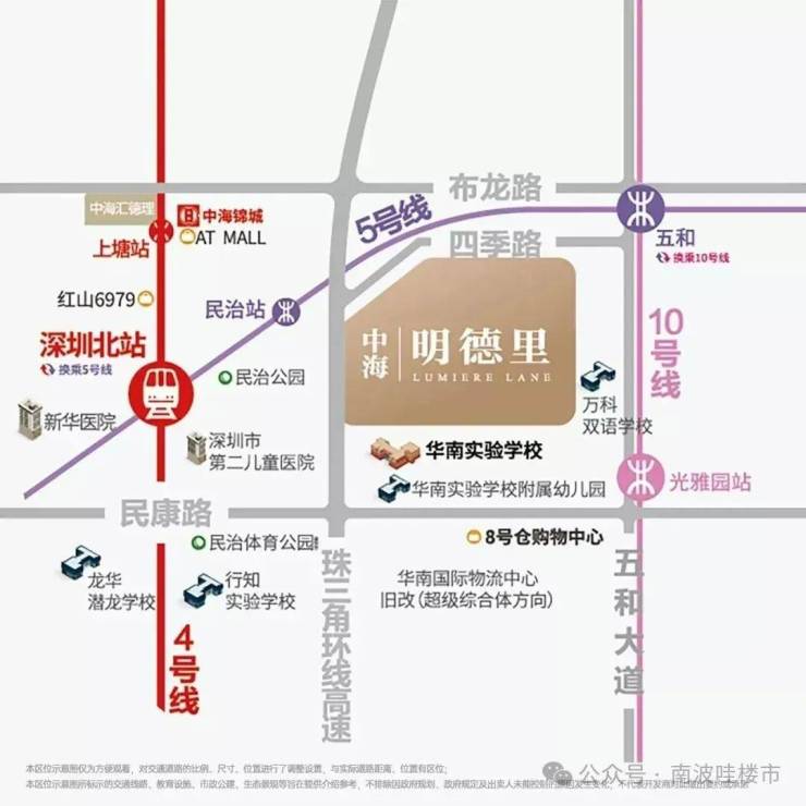2)北站国际商务区,深圳六大总部基地之一,高投入打造国际化城市会客厅;项目距离深圳北站直线约2公里,所在民治街道是龙华目前发展的核心区域;