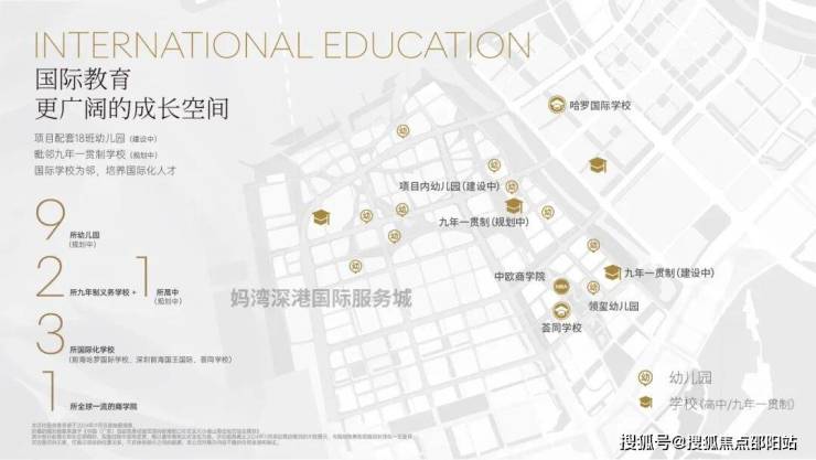 学校:楼下配备18班幼儿园,隔壁规划1所九年义务制学校;荟同,中欧等国际教育资源