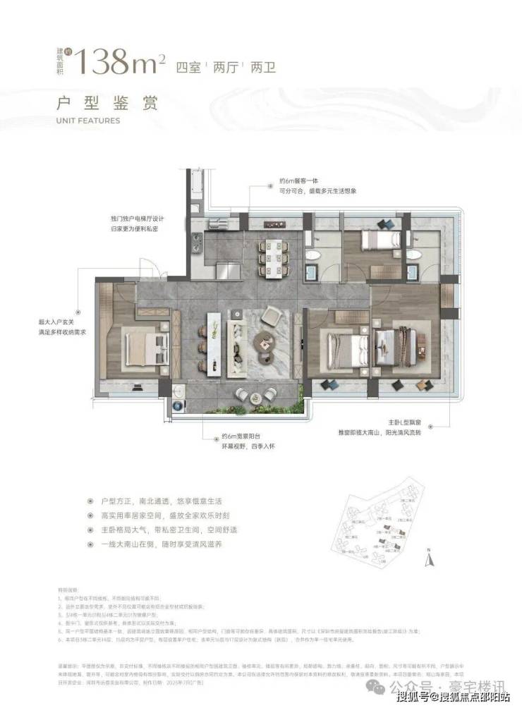 ⑥【一步到位性价比王牌 前海改善头等舱】4栋建面约138㎡奢阔山居范本:LDKB一体化,增配多功能厅、最大约15.5米南向四开间、约6m宽境阳台、主卧270°巨幕飘窗带独立卫浴及衣帽间、最高约94%拓展后综合使用率