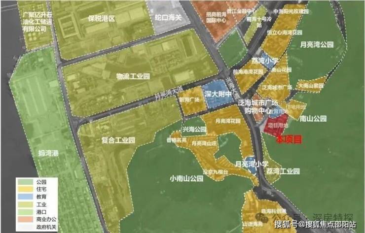项目所在前海合作区大、小南山片区西组团,规划定位重点安排教育、配套、体育等公共服务设施和生活服务设施(数据来源:《中国(广东)自由贸易试验区深圳前海蛇口片区及大小南山周边地区综合规划》)