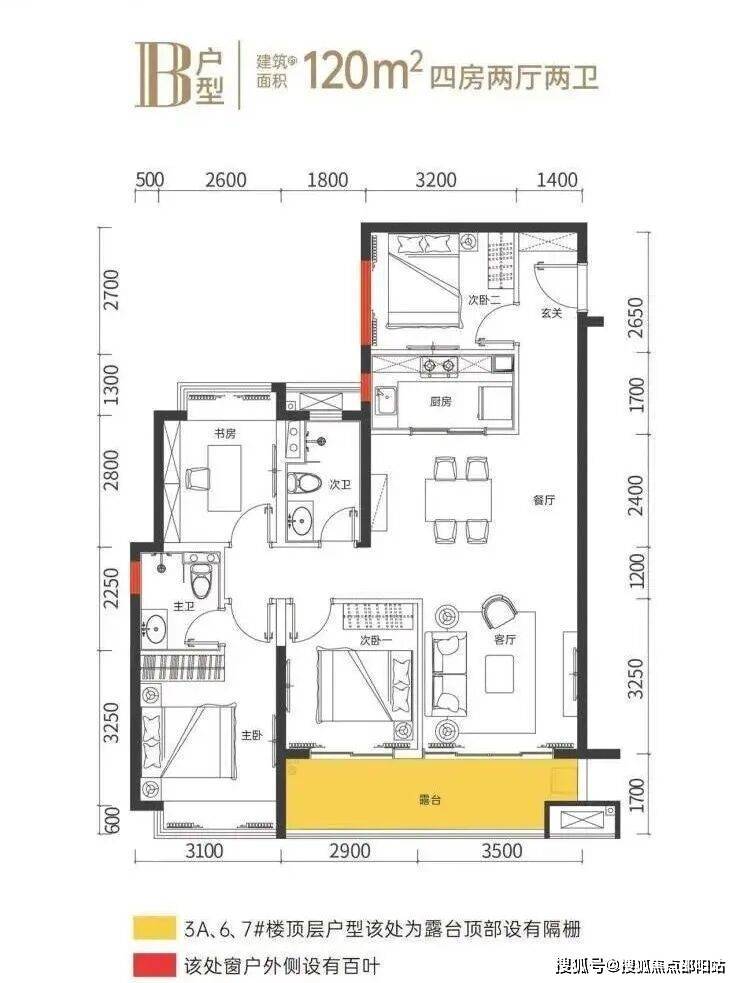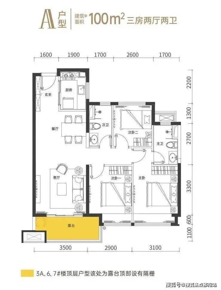 在售户型:建筑面积约100㎡三房两厅两卫、约120㎡四房两厅两卫