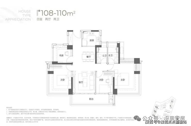 110㎡的4房2厅2卫:户型分布于1栋以及2栋2/3单元,东南、西南朝向,双龙抱珠户型。