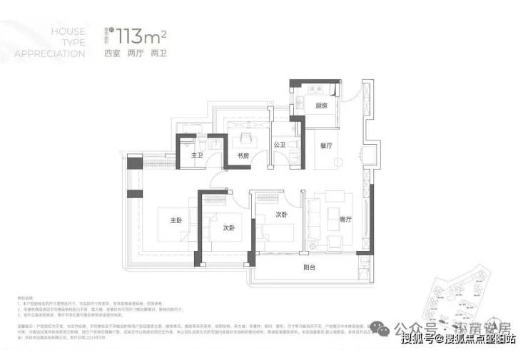 113㎡的4房2厅2卫:户型分布于5/6栋,南向,竖厅户型看山景。