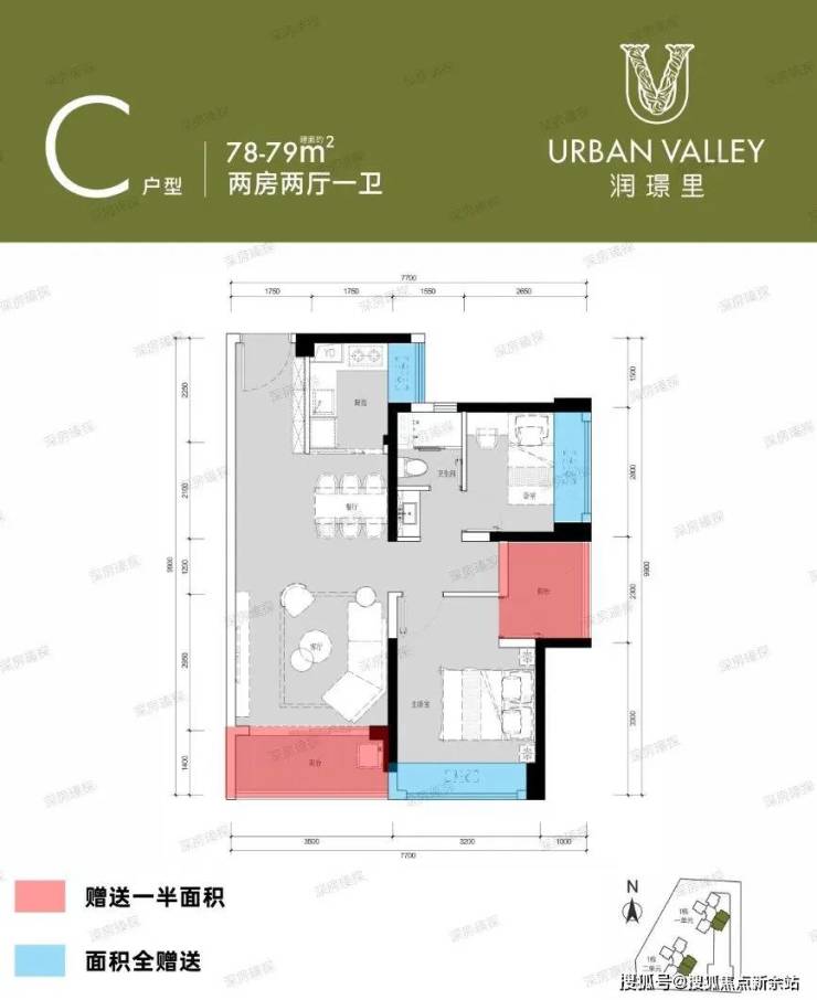 【产品面积】约78-90㎡3房
