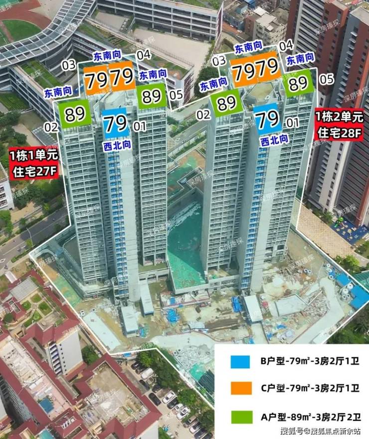89㎡的3房2卫,折后总价260-355万/套,单价2.9-3.95万/㎡。