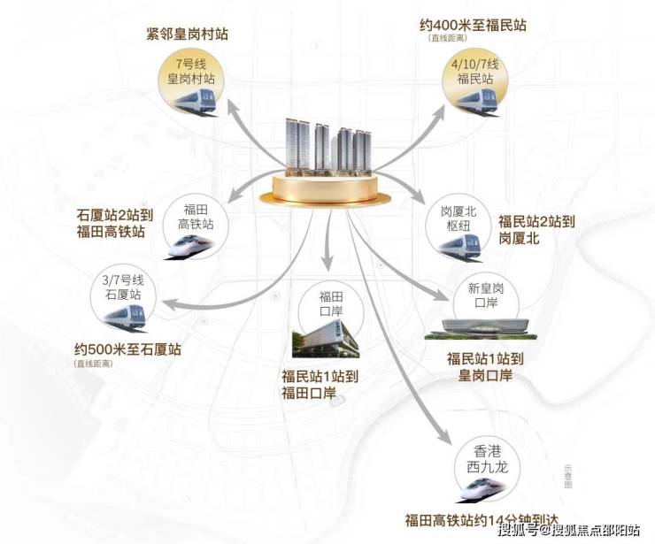 ·1站双口岸 ·2站福田高铁站 ·2站岗厦北枢纽 ·双地铁口 四地铁线
