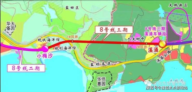 轨道8号线三期,自小梅沙站后接出,终至大鹏新区的溪涌站,预计2026年通车。