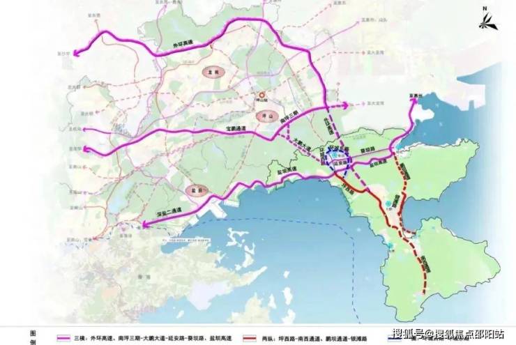 高速通道方面,深圳外环高速三期,北起坪山区聚龙路,南至大鹏新区坪西路,双向6车道。深圳外环高速三期的建成将与一、二期工程贯通,进一步完善坪山区与大鹏新区的高快速交通路网。