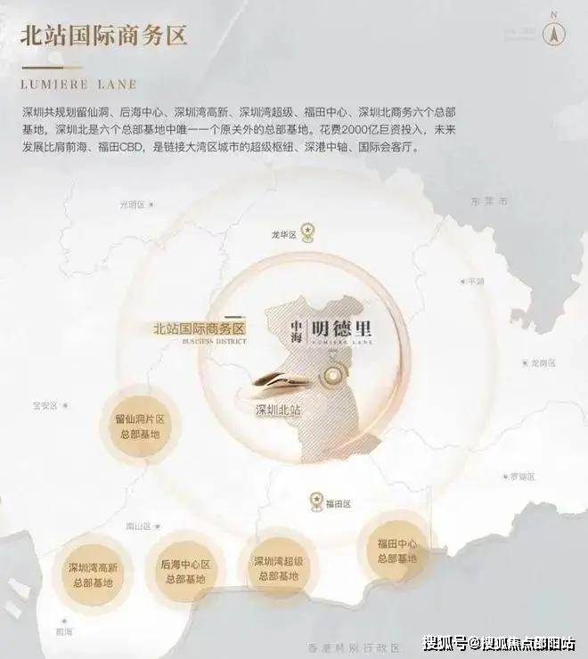 2)北站国际商务区,深圳六大总部基地之一,高投入打造国际化城市会客厅;项目距离深圳北站直线约2公里,所在民治街道是龙华目前发展的核心区域;