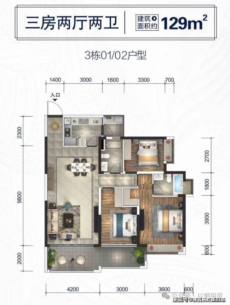 约6米双入户大堂,约3.9米阳台,三卧室瞰湖
