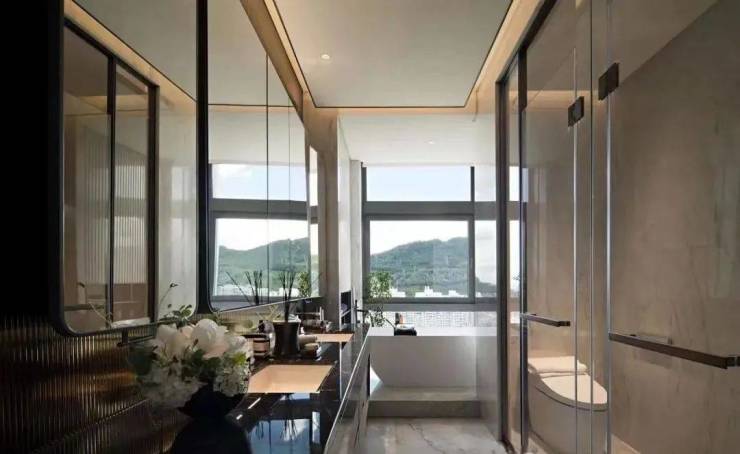 舒适:3.9米层高,10米客厅开间全落地玻璃设计。