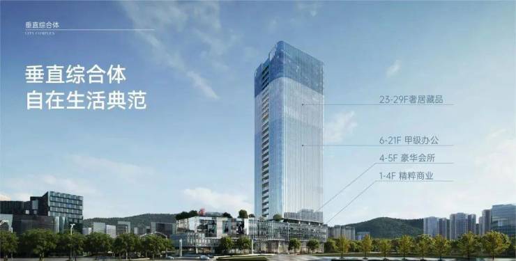集合云端居住、奢雅会所、精粹商业、甲级办公为一体的垂直综合体,生活&休闲、社交&事业,悦然相逢,自在切换。