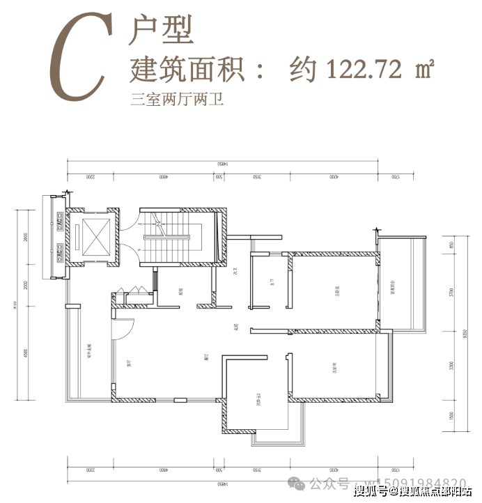 主力户型:98㎡两房,111㎡三房,122㎡三房