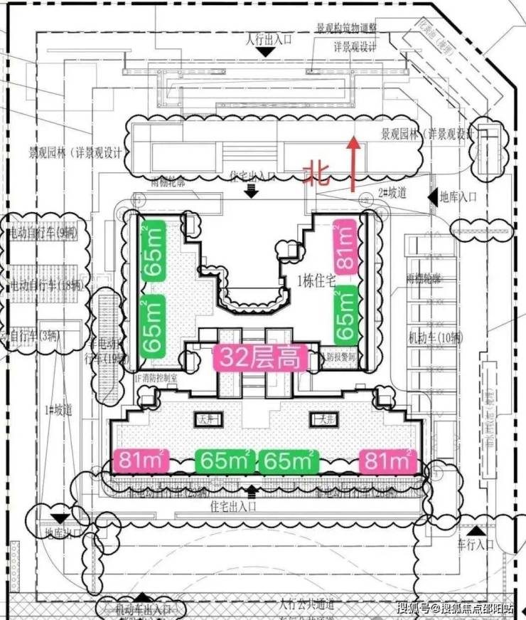 项目为单体楼,建设用地3581平,总高32层。
