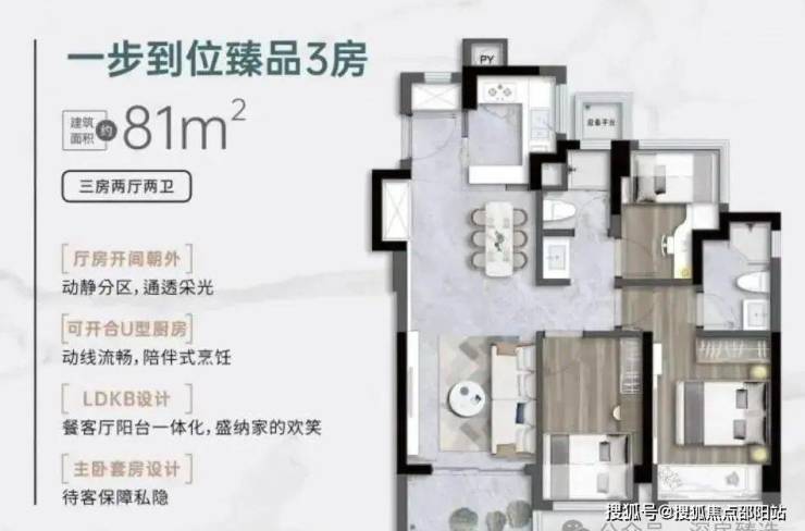 81平3房2厅2卫。