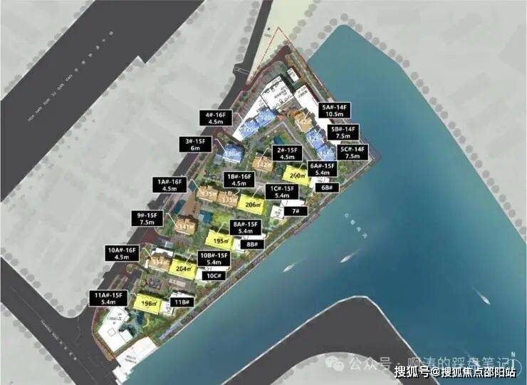 保利湖光悦色占地面积约为4.4万平方米,总建筑面积约为13.4万平方米,容积率为2.83,绿化率达到了35%。整个项目共有478户,车位数为898个,车位比高达1:1.87。产品类型主要包括小高层住宅和叠墅,其中16栋为14-16层的小高层住宅,5栋临河的4层叠墅。小区设计采用了南低北高布局,东侧由于限高15米,设有5栋4层高的叠墅,西侧则是15-16层的小高层设计。