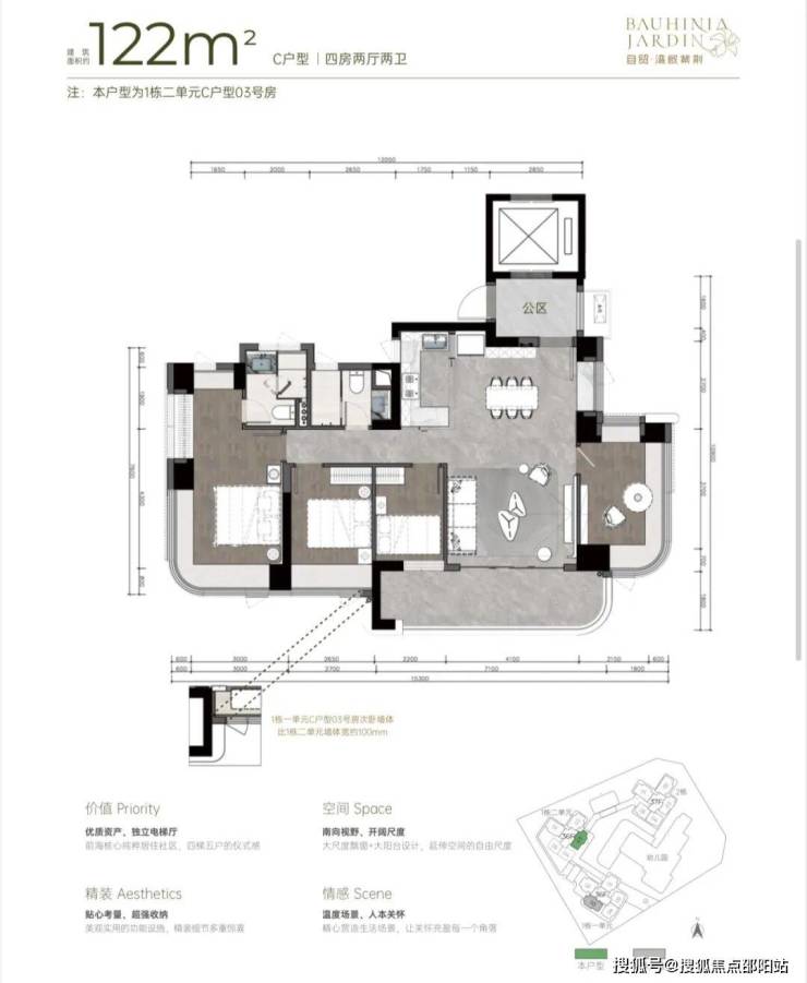 户型:新规设计、高使用率,规划主力为3-4房产品。