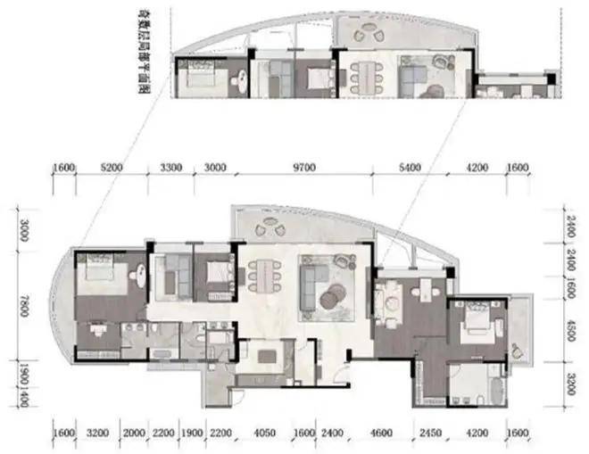 顶楼大平层474㎡,实用约660㎡,毛坯售价1.3亿